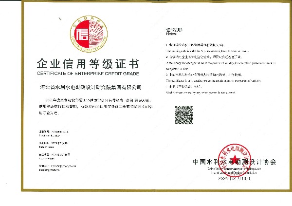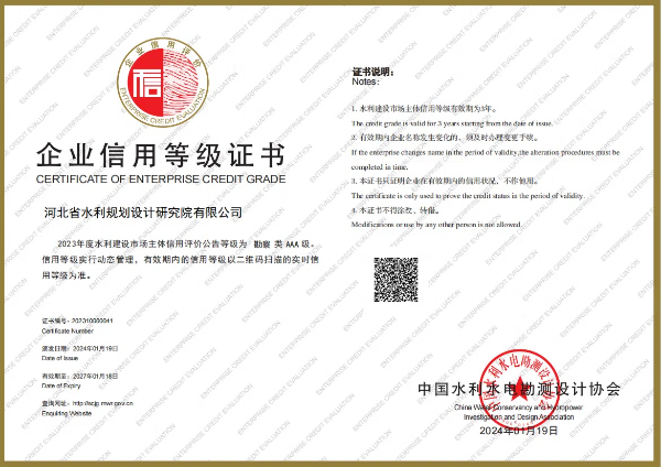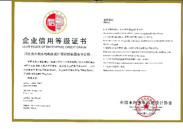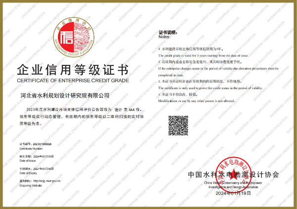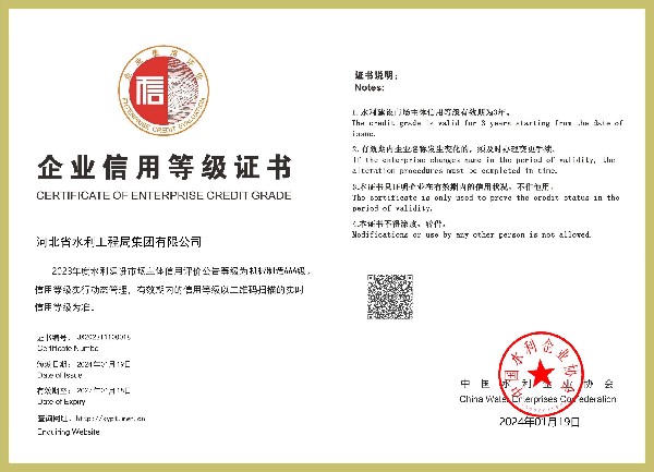 • 水利AAA信用等級(jí)證書(shū)(施工類)