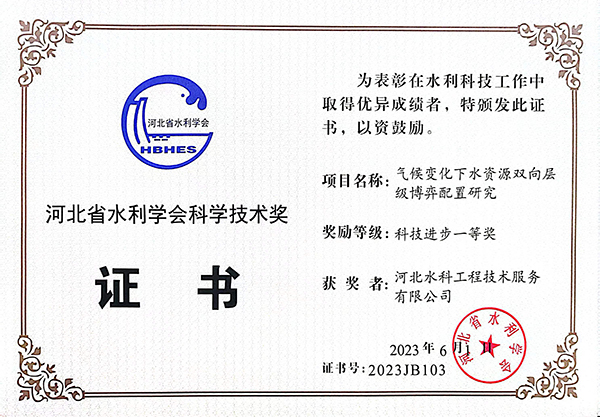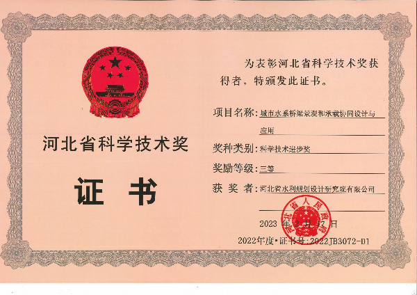 • 獲河北省水利學(xué)會(huì)科技進(jìn)步一等獎(jiǎng)