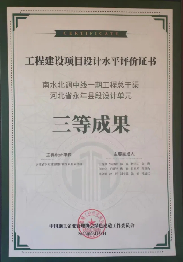 • 南水北調(diào)中線一期工程總干渠河北省永年縣段設(shè)計(jì)單元三等成果