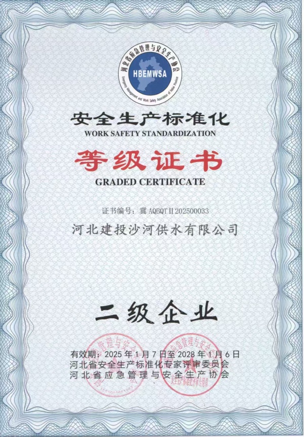 • 安全生產(chǎn)標(biāo)準(zhǔn)化等級(jí)證書(shū)