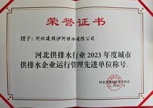 • 城市供排水企業(yè)運(yùn)行管理先進(jìn)單位稱號(hào)