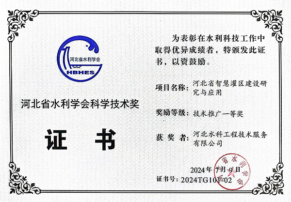 • 獲河北省水利學(xué)會(huì)技術(shù)推廣一等獎(jiǎng)